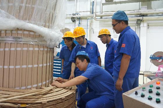 9月5日下午,在A201711K09新型電抗器線圈生產(chǎn)現(xiàn)場,保變電氣設計部電氣室主任杜振斌正和他的兩位同事,與制造中心線圈車間繞線組骨干面對面交流,優(yōu)化設計方案,共同解決線圈繞制過程中遇到的問題,提升產(chǎn)品質(zhì)量。