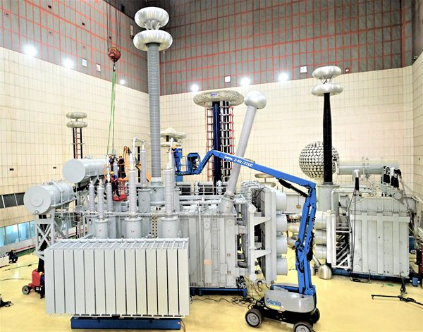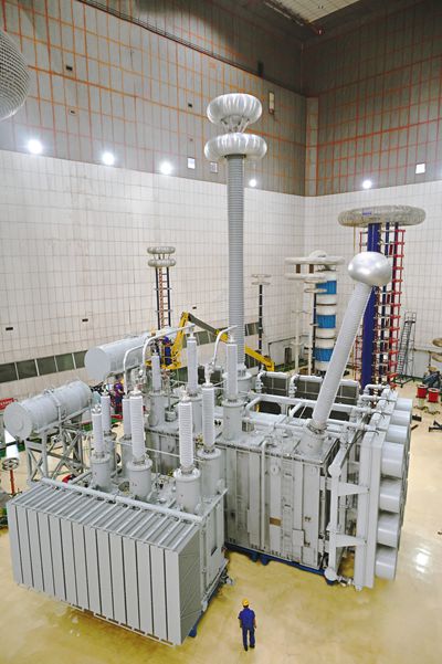 9月21日,在國(guó)家電網(wǎng)公司、沈陽(yáng)變壓器研究院及行業(yè)專家見證下,由保定天威保變電氣股份有限公司為世界上海拔最高的特高壓交流輸變電工程——川渝特高壓交流工程甘孜站,自主研制的全球首臺(tái)現(xiàn)場(chǎng)組裝式特高壓1000千伏現(xiàn)場(chǎng)組裝主變壓器,一次通過廠內(nèi)試驗(yàn),產(chǎn)品各項(xiàng)指標(biāo)和參數(shù)優(yōu)良。