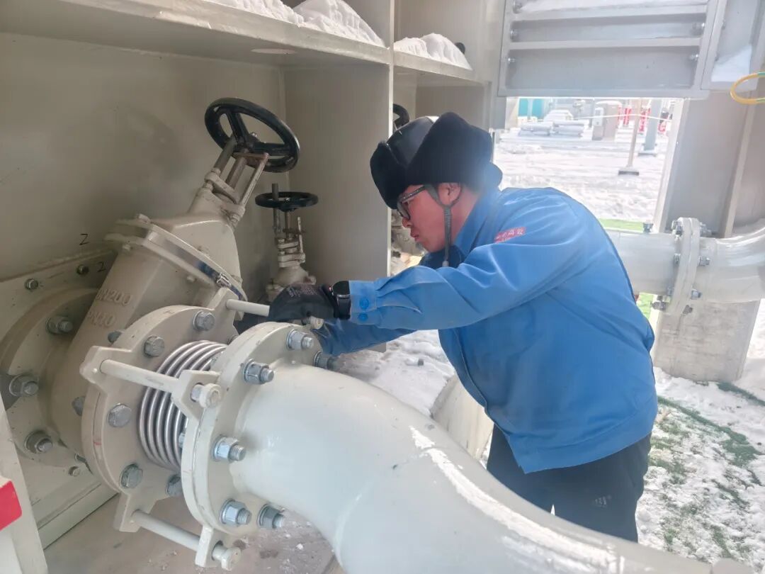 為應對極端低溫,施工現(xiàn)場采取了多項措施:在安裝區(qū)域搭建臨時防風棚,使用低溫專用潤滑油,為設備預熱,同時每工作45分鐘就組織人員輪流到取暖棚中恢復體溫。即便這樣,每個人的眉毛和睫毛上都結了一層冰霜。
